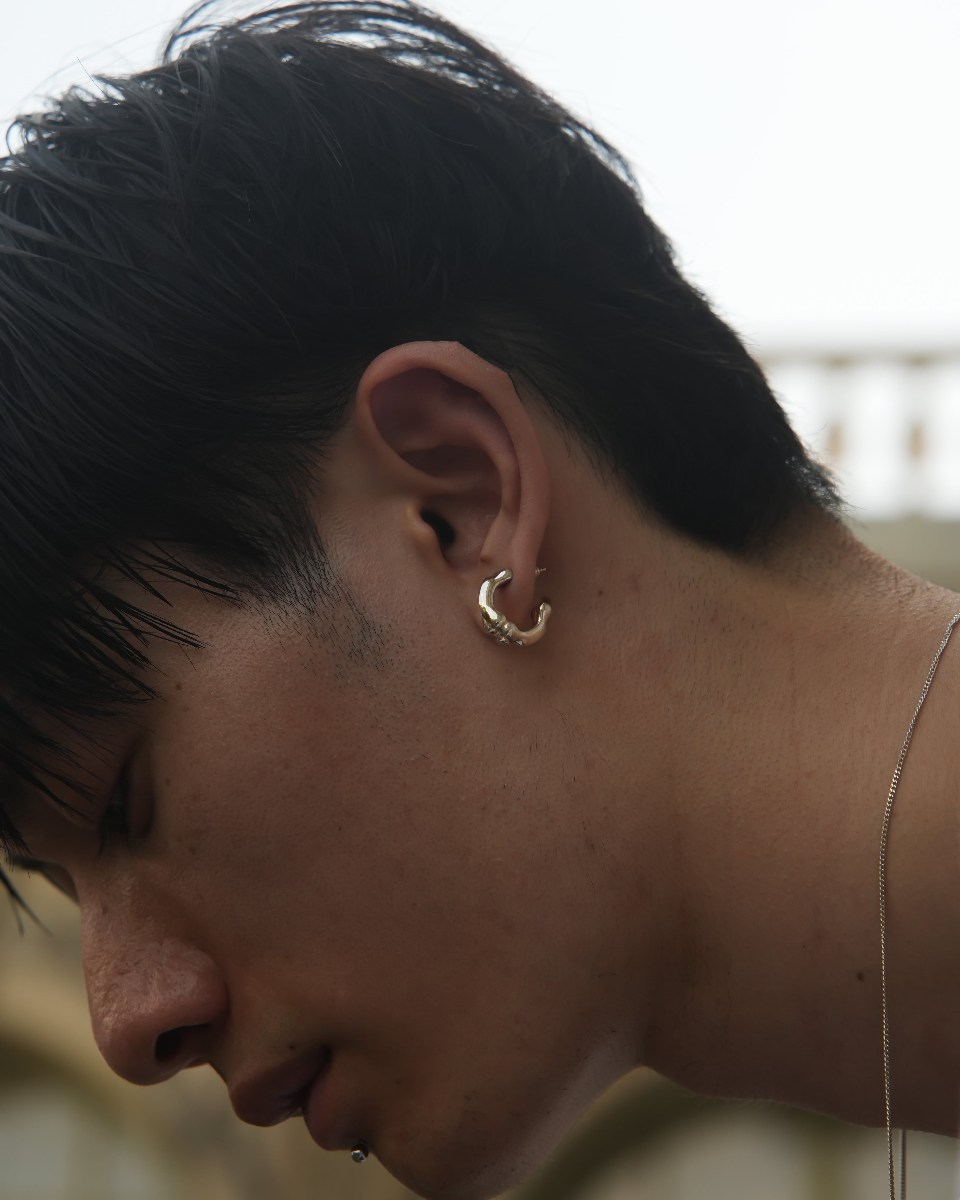このピアスは、“骨が人と人を繋ぐ”というテーマのもと、