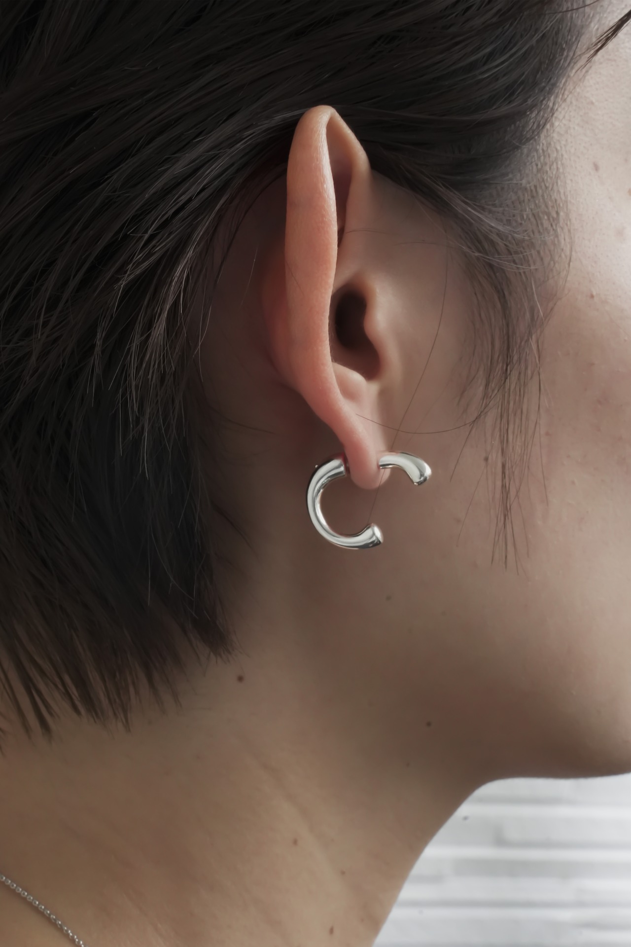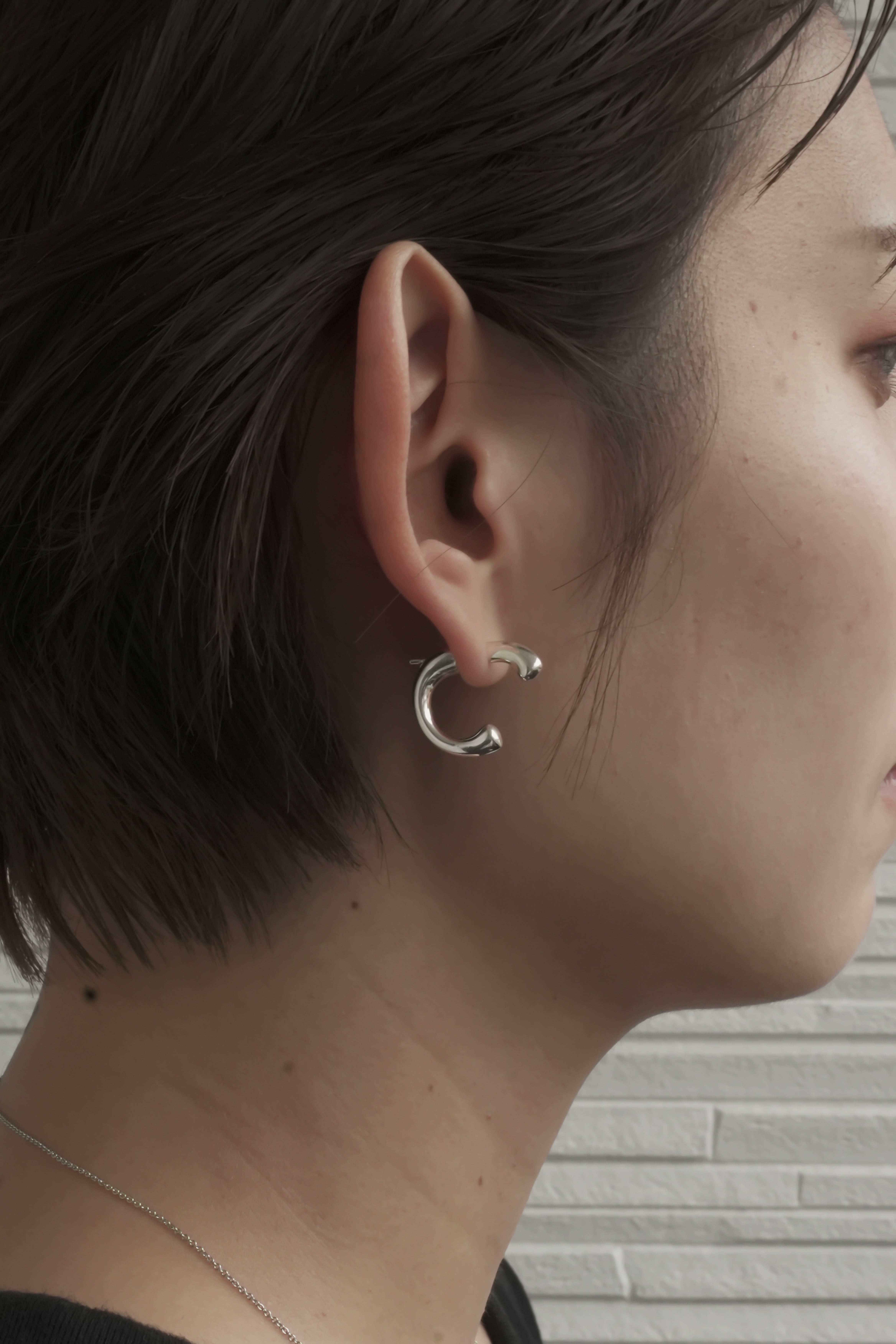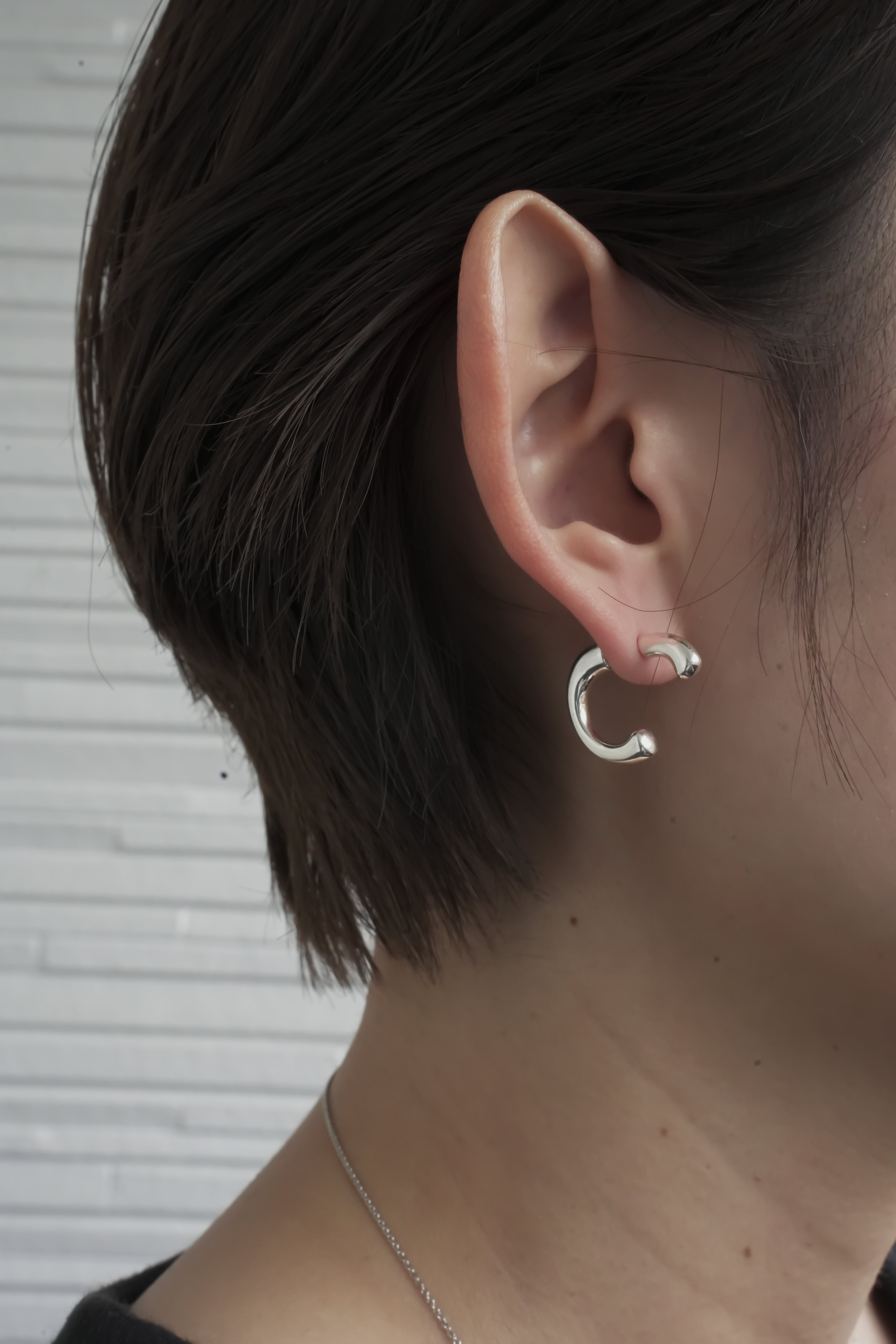 カーブベースにヒネリを加え立体的なシルエットに仕上げたピアス