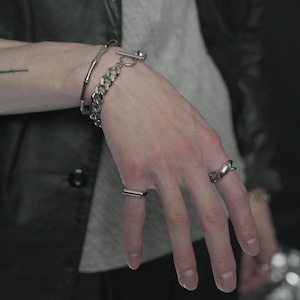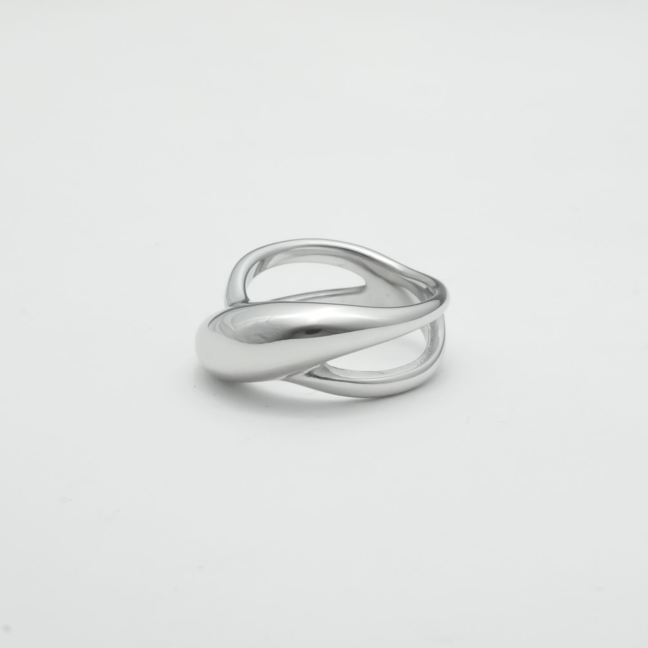 2本のシャープのラインとぷっくりしたラインが斜めにクロスしたデザインのリング
